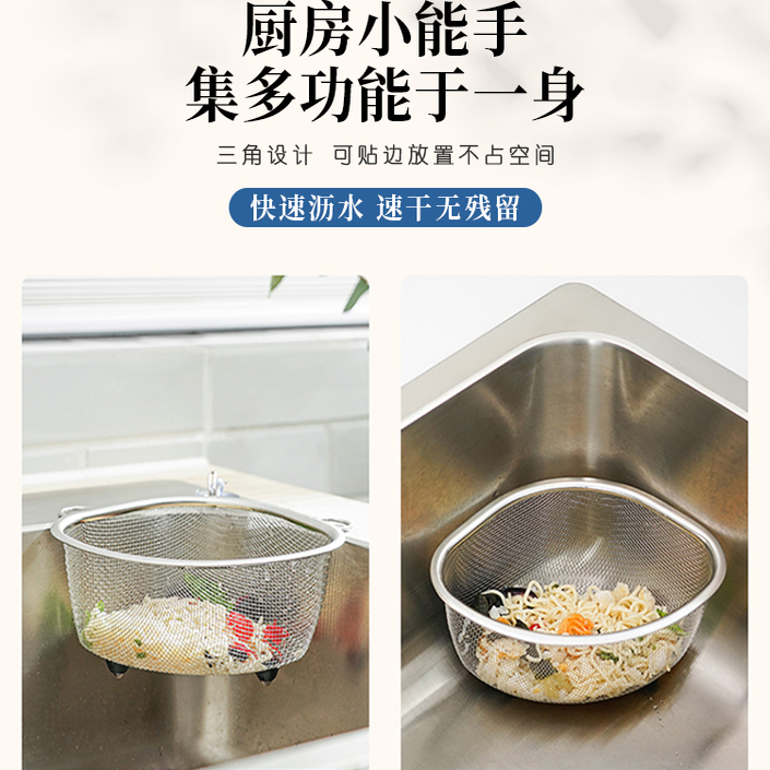 日本不锈钢水槽过滤网垃圾桶三角洗菜水池剩菜剩饭厨余垃圾沥水篮