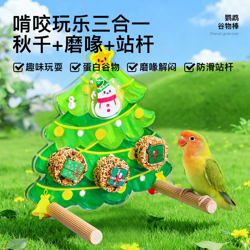 青松宠鹦鹉圣诞树啃咬玩具解闷自嗨谷物磨牙棒站杆秋千玩耍三合一