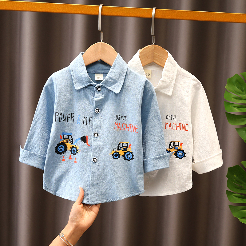 男童长袖衬衫纯棉薄款儿童春秋童装女童上衣婴儿外套宝宝卡通衬衣