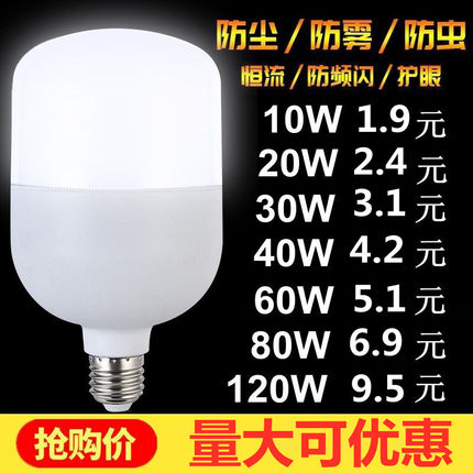 节能灯泡超亮节能大功率led灯E27大螺口10W80W200W工厂车间照明灯