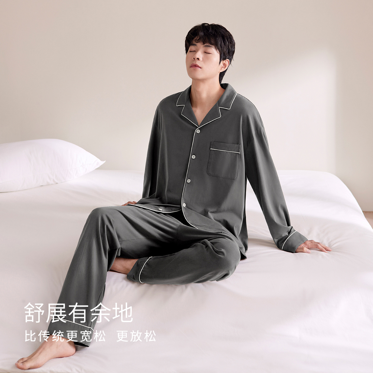 静韵超柔软睡衣女春秋纯棉情侣睡眠家居服长袖男套装夏季薄款