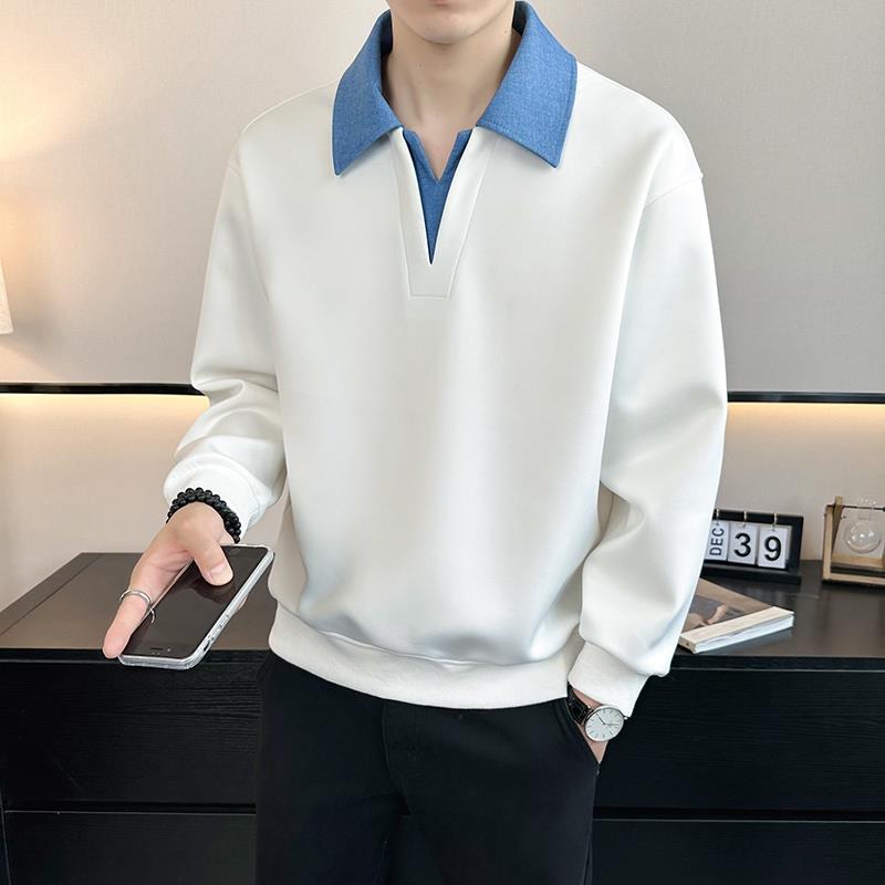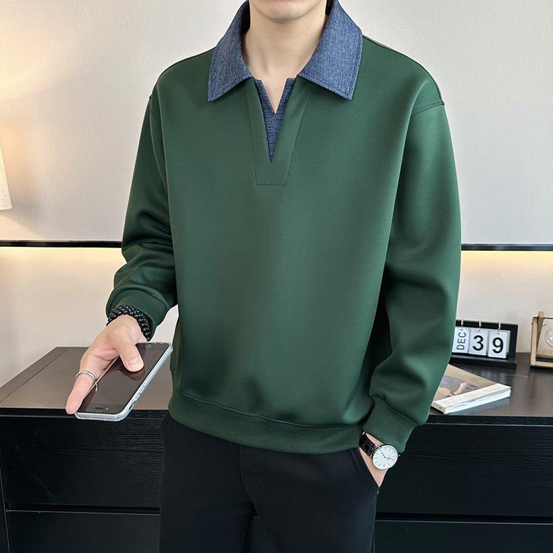 秋冬季男士新款假两件卫衣男2025简约宽松长袖polo衫翻领t恤1021n
