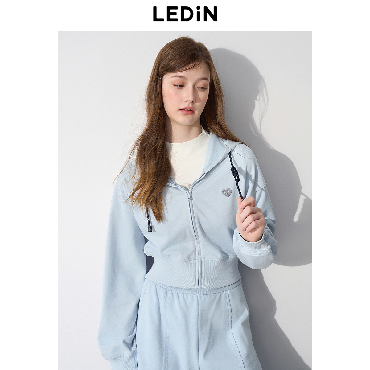 乐町韩系通勤截短式卫衣外套2025春季新款miu系双色帽绳设计上衣