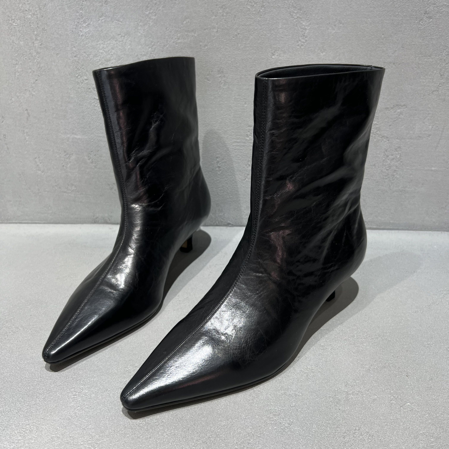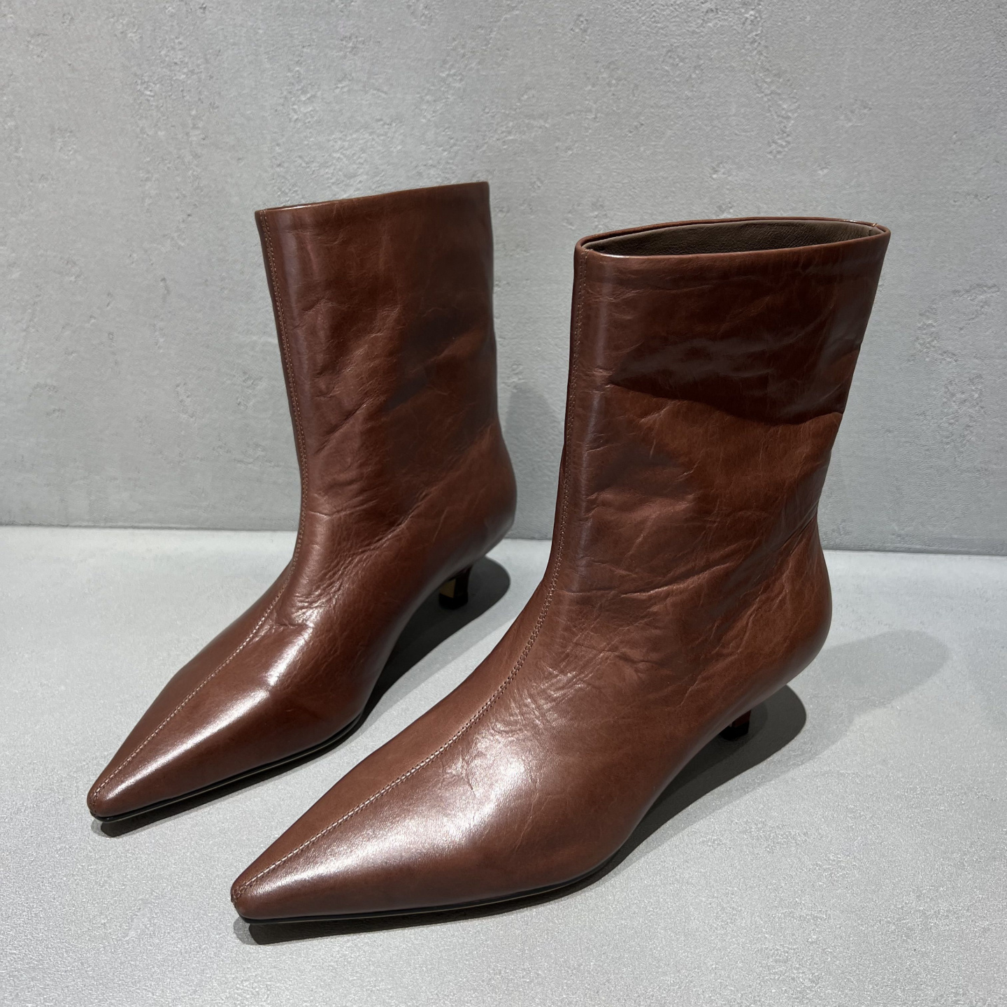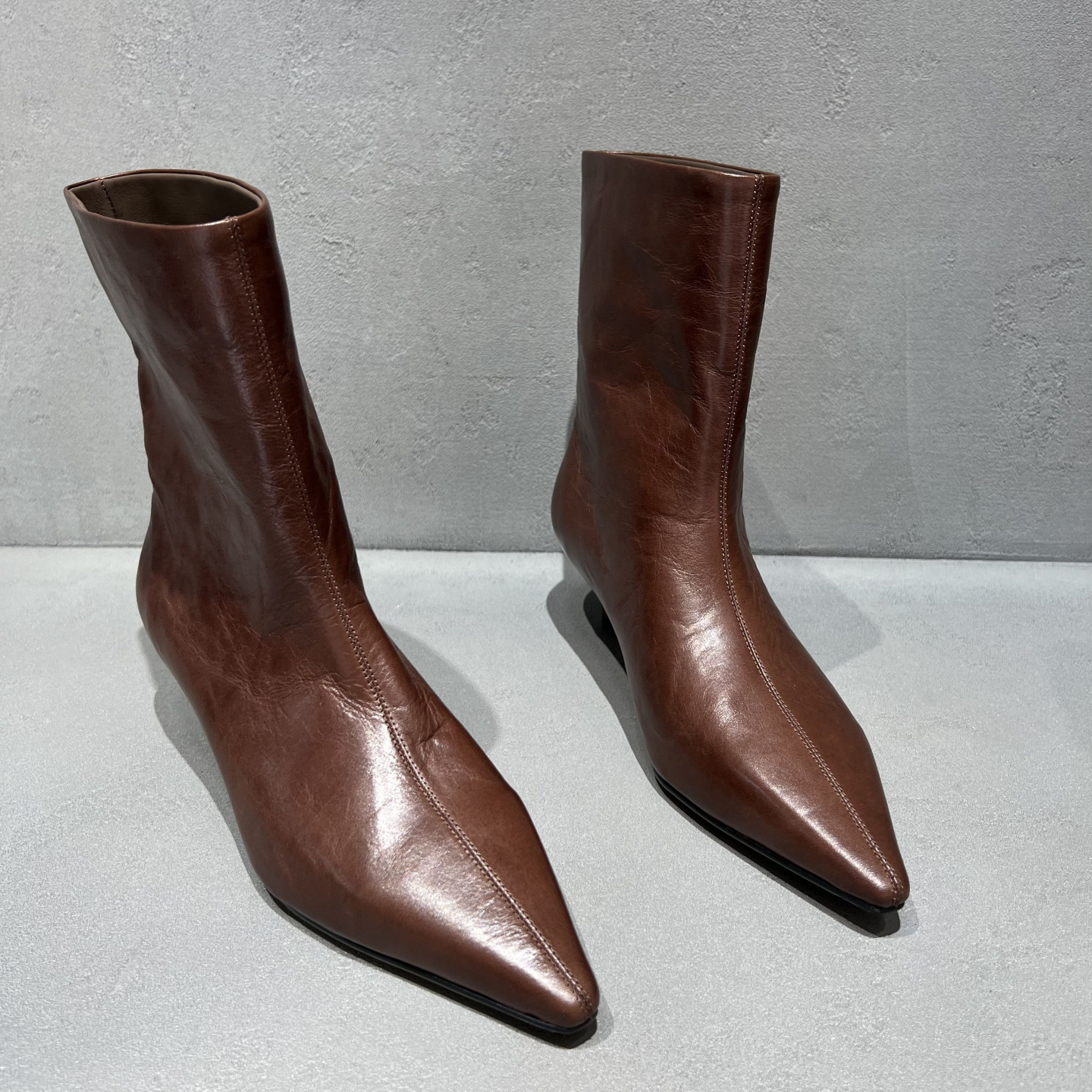 欧洲站先锋名典女鞋2025秋季新款欧货真皮尖头细跟套筒短靴时装靴