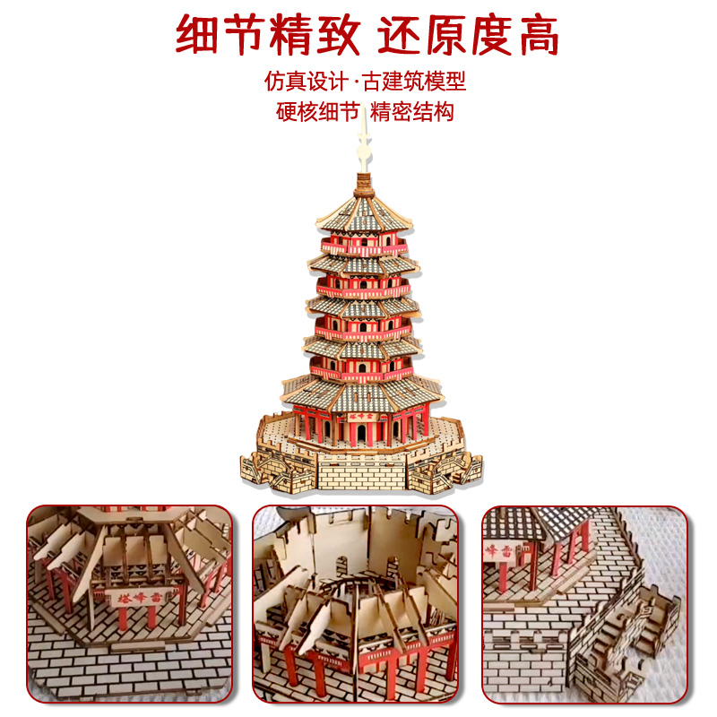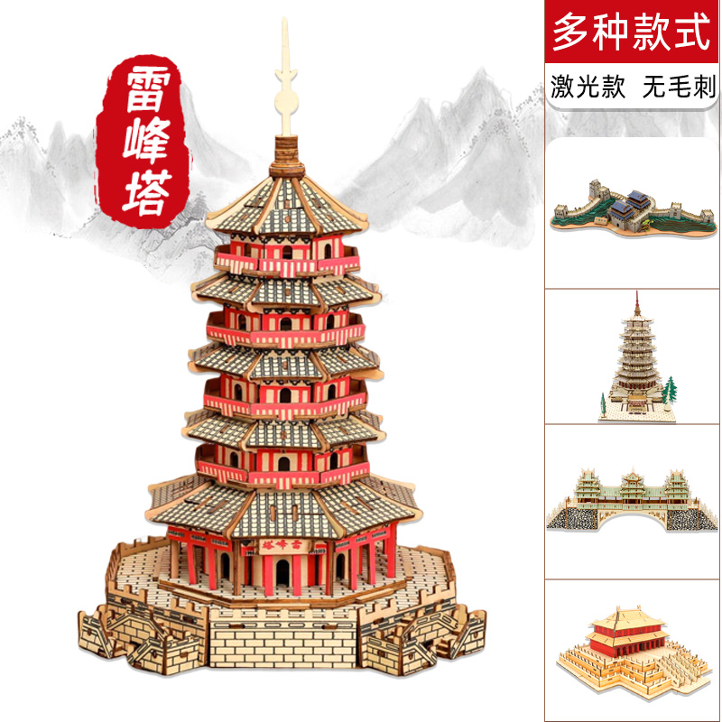 木质立体拼图3d古建筑雷峰塔模型 益智玩具成人男孩女孩高难度diy