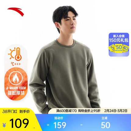 安踏摇粒绒圆领套头卫衣男士春季新款保暖抓绒衣冲锋衣内胆打底衫
