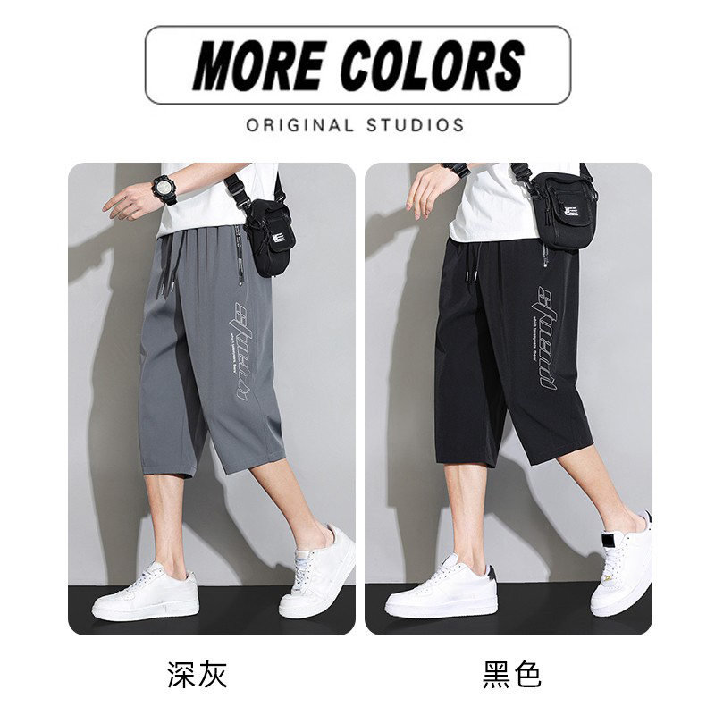 冰丝七分裤子男士夏季薄款潮牌宽松速干过膝中裤男款运动休闲短裤