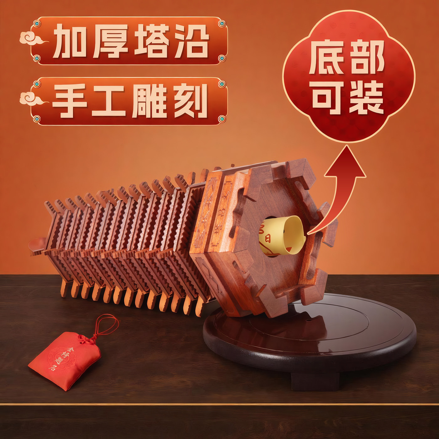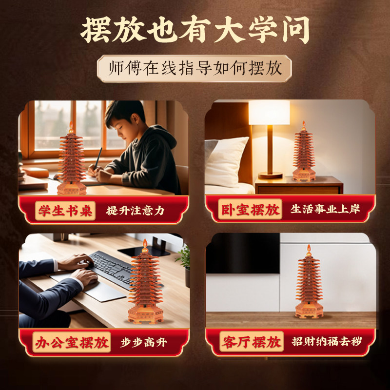 桃木文昌塔摆件木质九层十三层13层办公室书房书桌装饰摆设木雕制