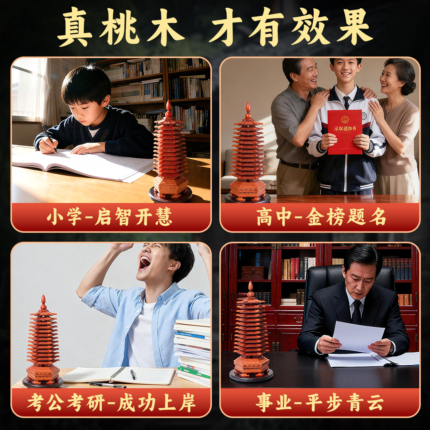 真桃木文昌塔【赠五帝钱】