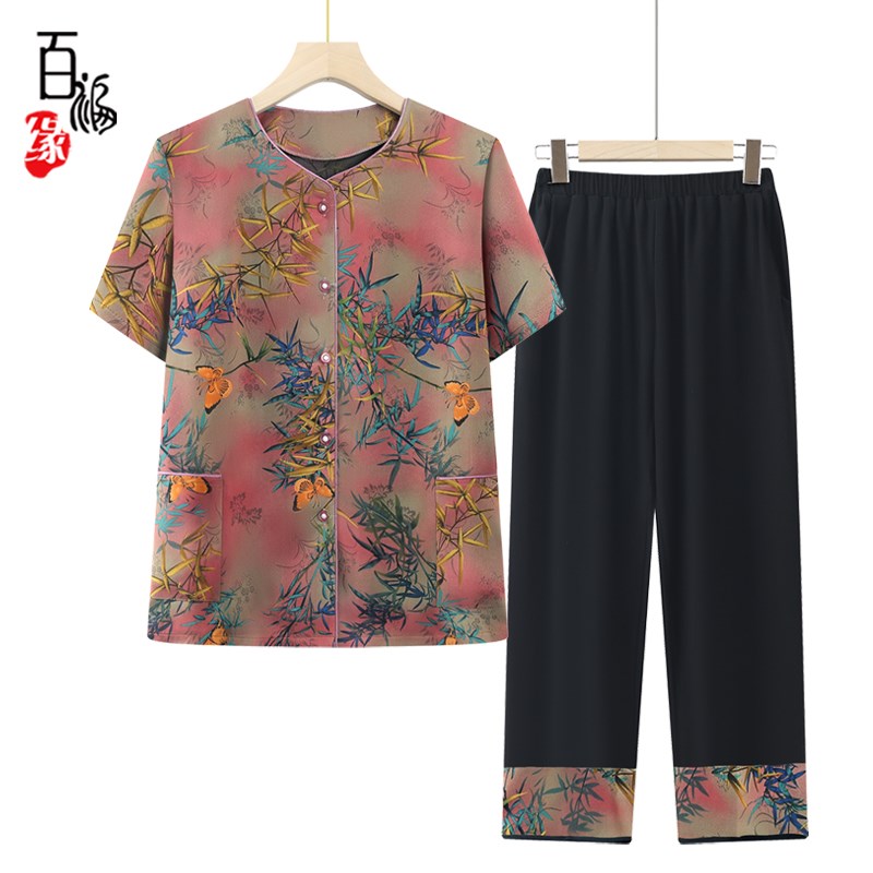 中老年人女装妈妈夏季短袖衬衫套装60岁70岁奶奶老太太夏装衣服80