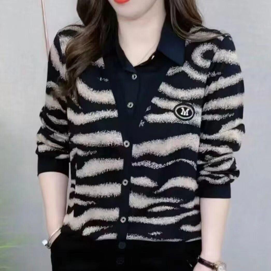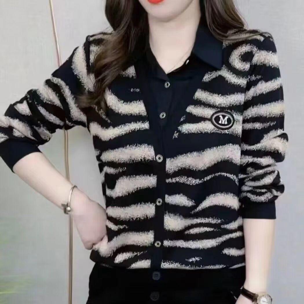 假两件长袖T恤女春秋季大码女装妈妈时尚带领上衣有领气质打底衫