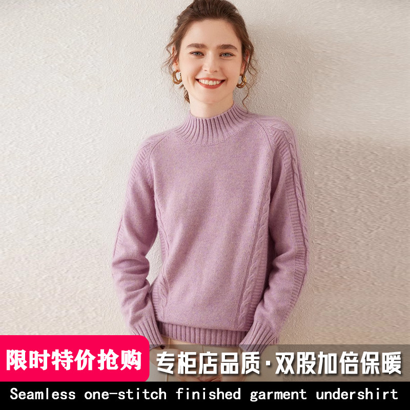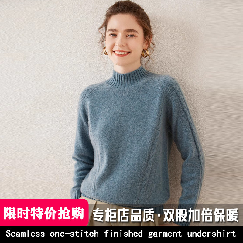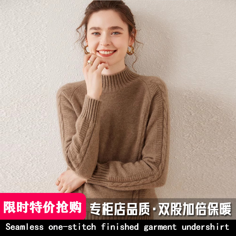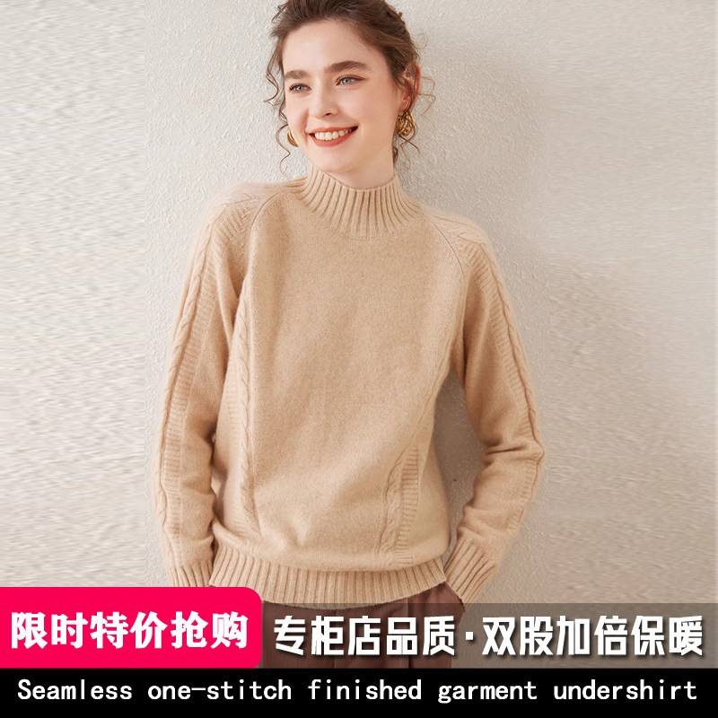 鄂尔多斯市100纯山羊绒衫女半高领毛衣套头秋冬季打底羊毛衫加厚