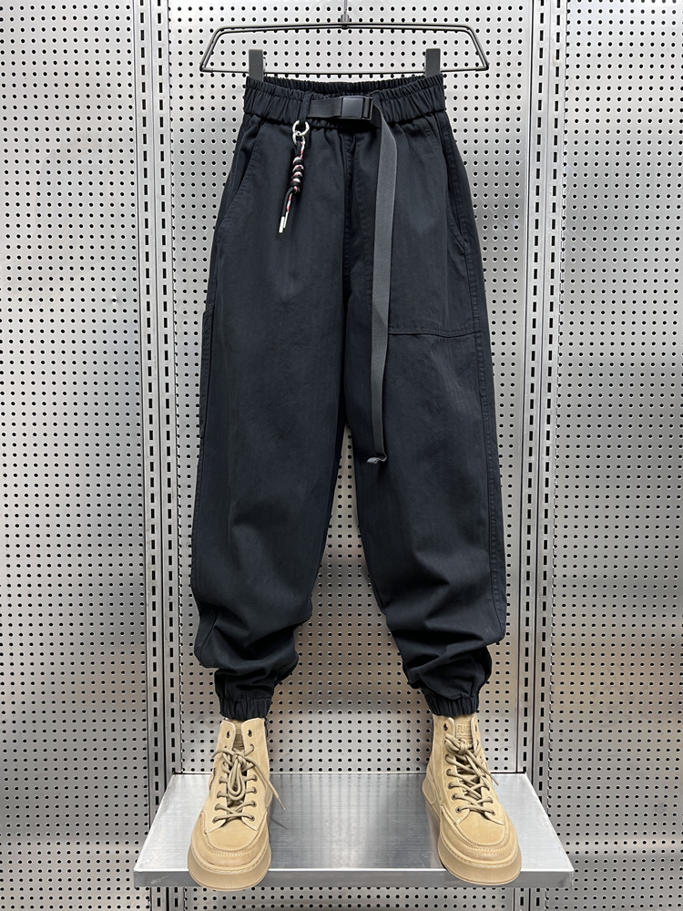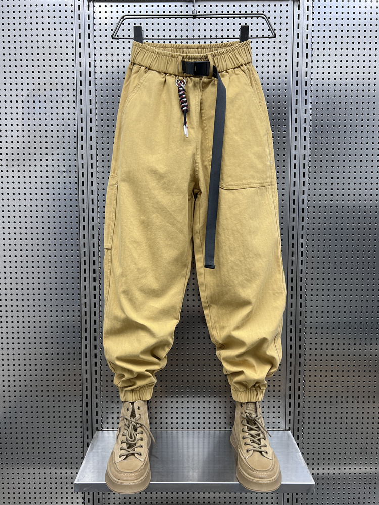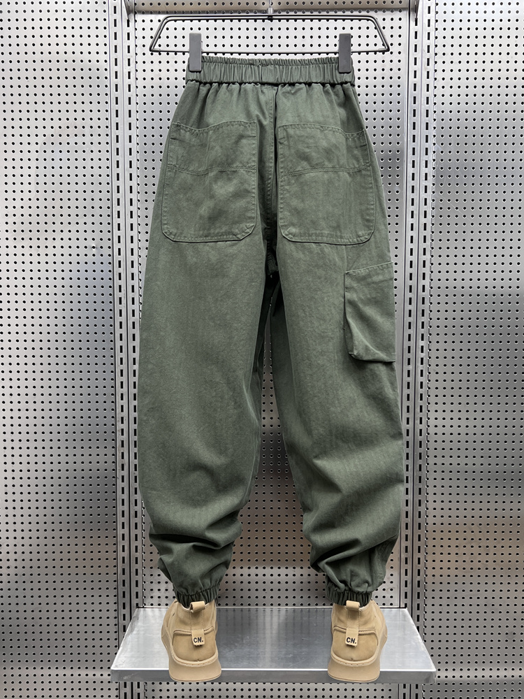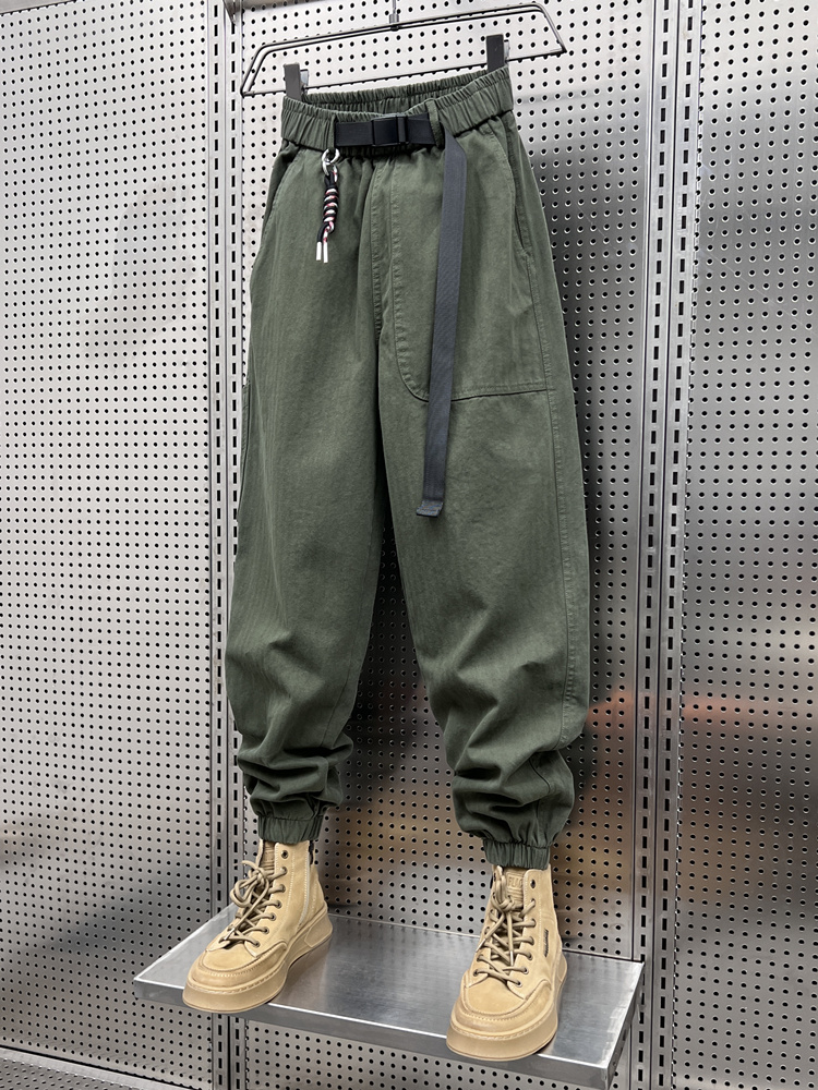 工装裤男士潮牌2024春季新款束脚休闲裤宽松百搭军绿色痞帅哈伦裤