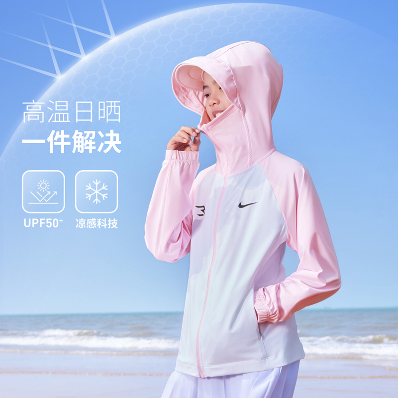 Nike 3brand儿童皮肤衣冰感女童遮阳外套夏季透气户外男童运动衣