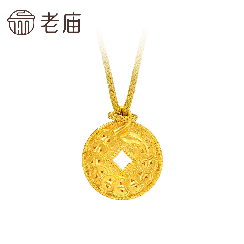 老庙黄金足金招财挂坠古法一串铜钱造型寓意招财进宝双面设计