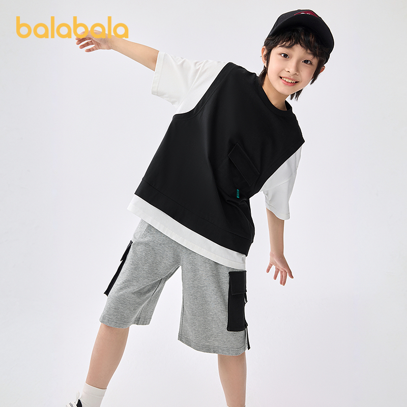 巴拉巴拉男童短袖套装2025新款童装夏季儿童休闲舒适两件套假两件