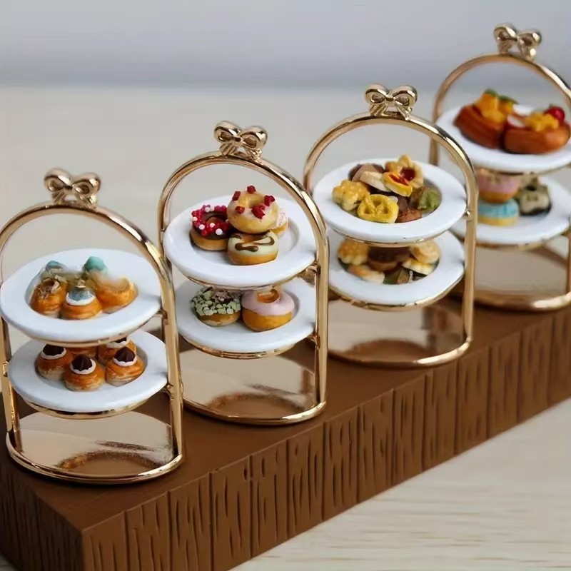 娃娃屋配件场景拍摄道具仿真迷你甜品台装饰摆件甜品蛋糕架置物架