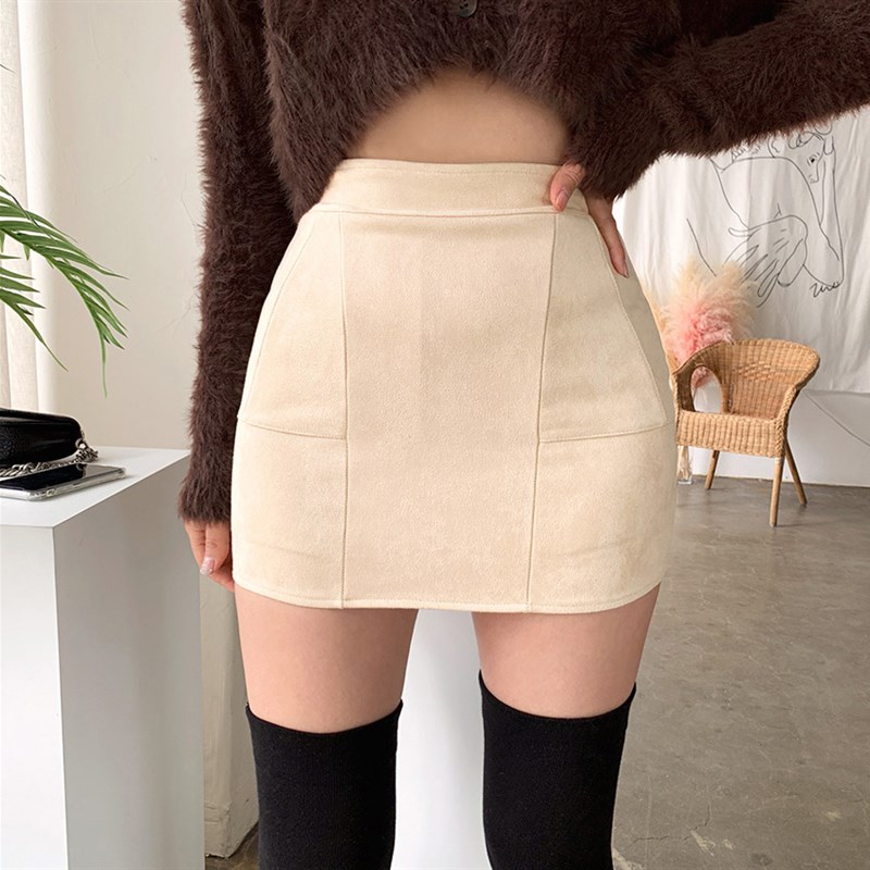 鹿皮绒短裙女秋季半身裙2024新黑色性感包臀裙紧身高腰短款一步裙