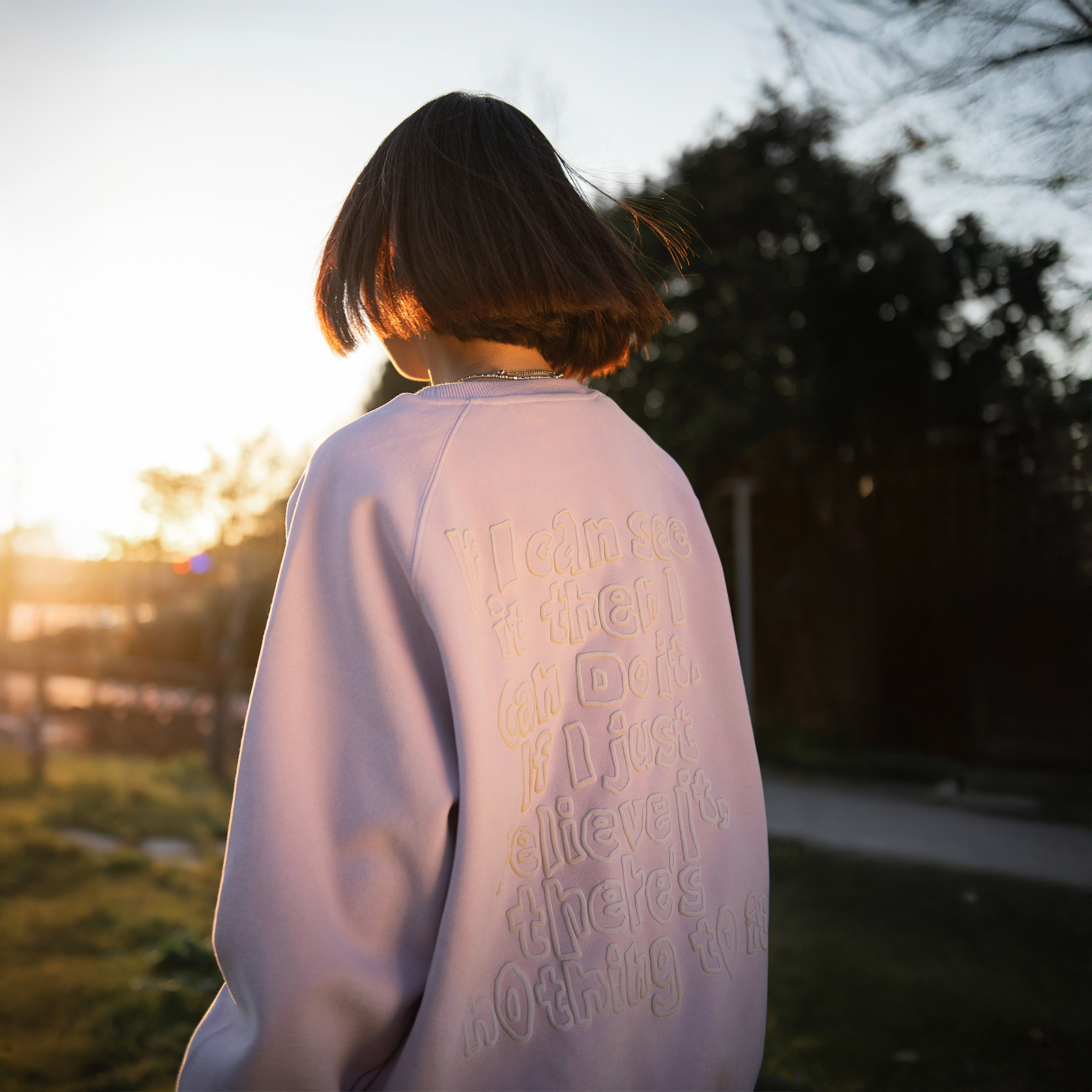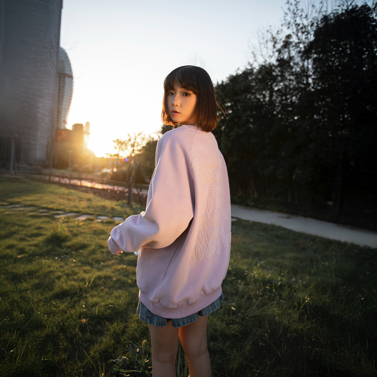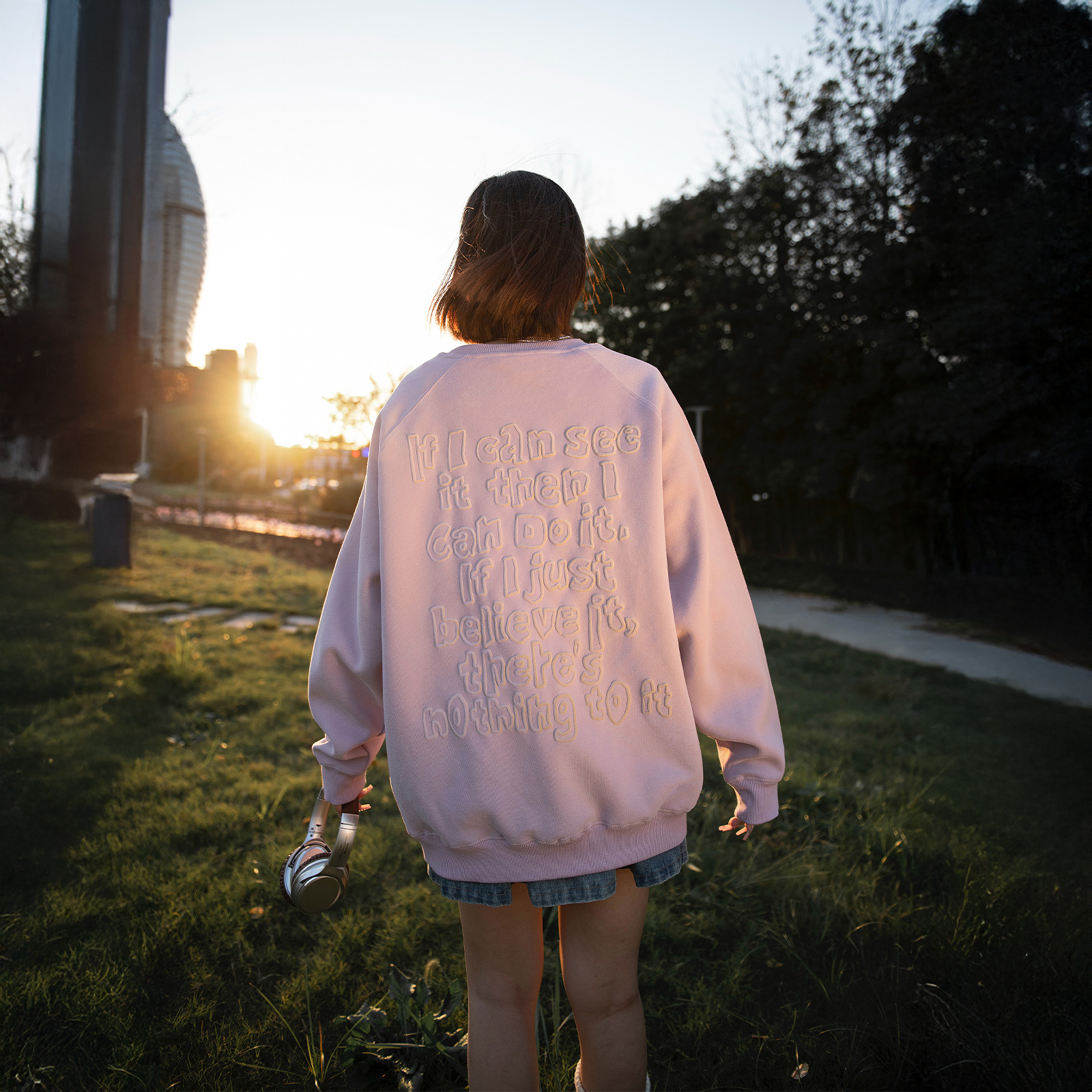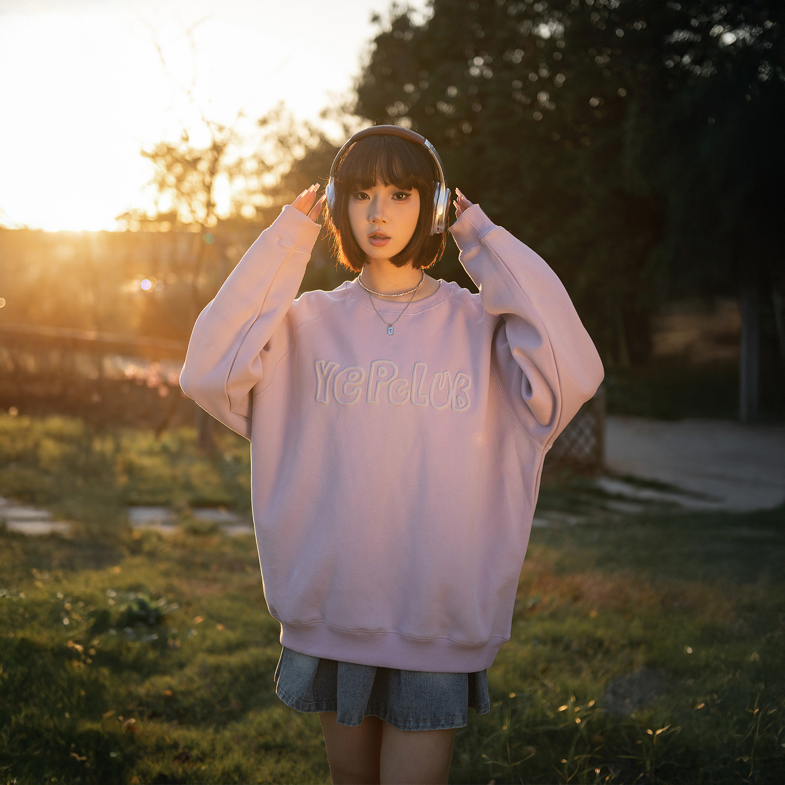 YEP发泡圆领复古字母卫衣女春季2025新款宽松潮牌插肩袖无帽上衣