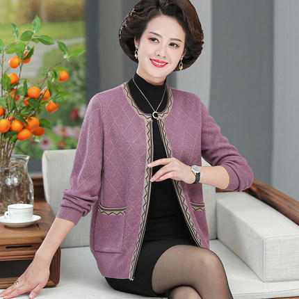 妈妈春秋装加肥针织开衫上衣中年女装短款中老年洋气薄款大码外套
