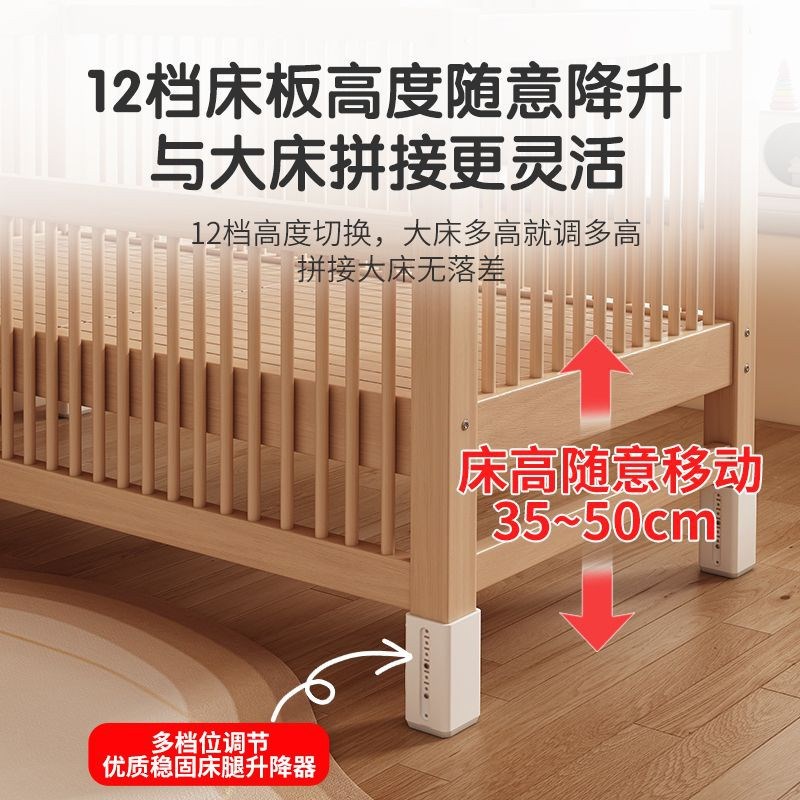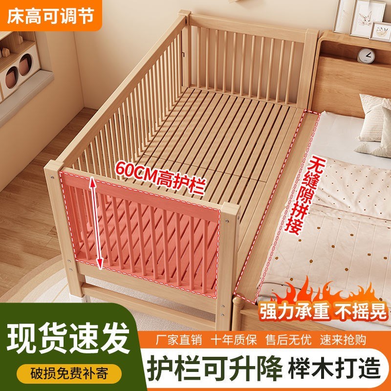榉木拼接床儿童床实木婴儿床加宽拼接大床小孩床边床儿童拼接床