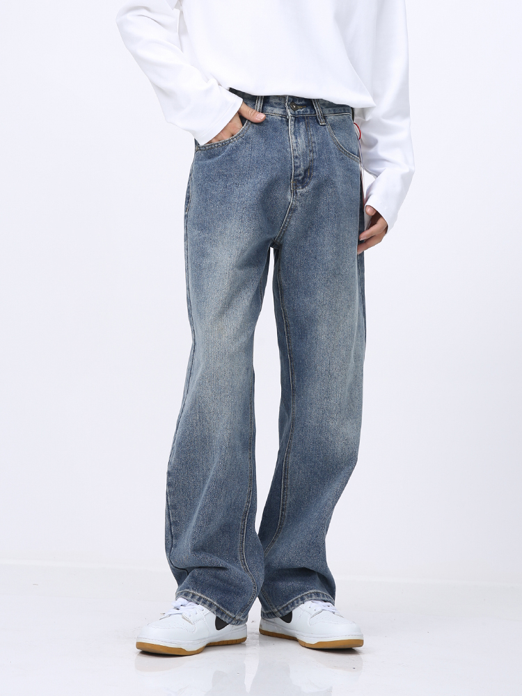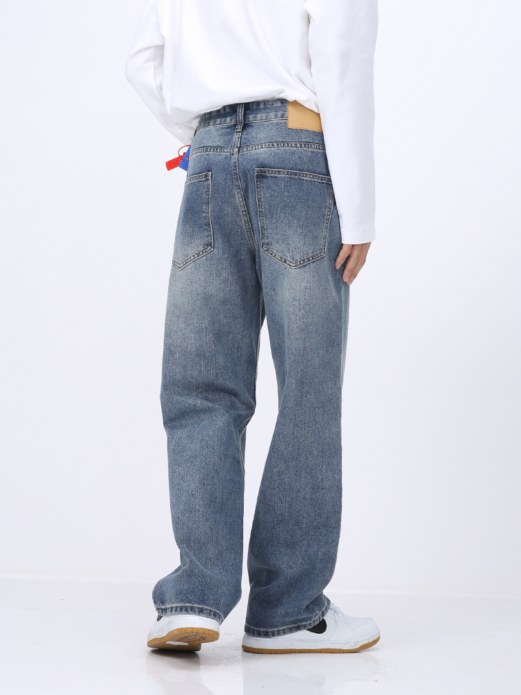 Voguo Relay 原创新品 韩版复古水洗简约百搭宽松直筒男女牛仔裤