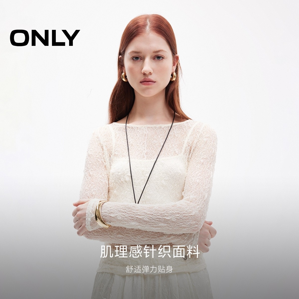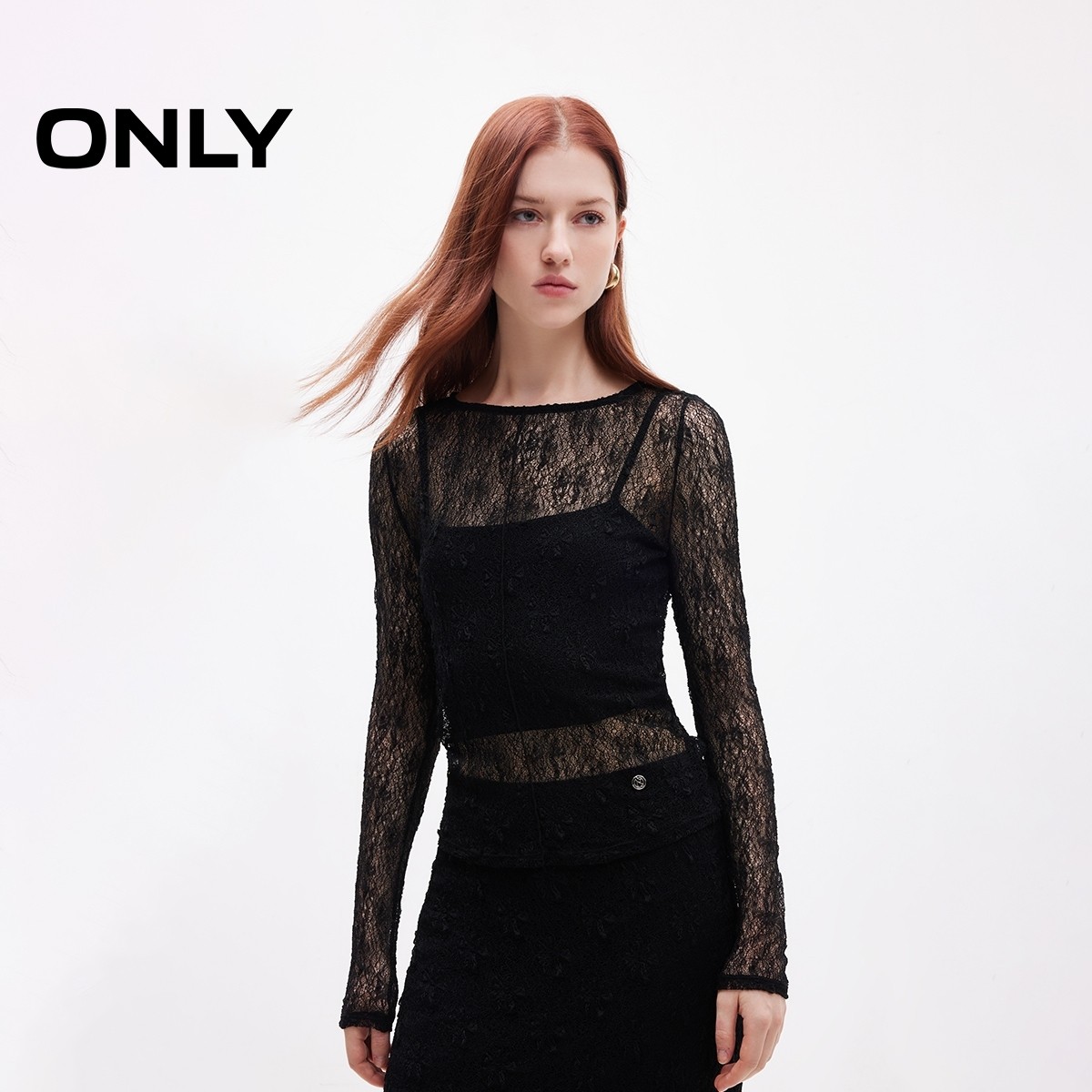 ONLY蕾丝修身长袖吊带套装T恤