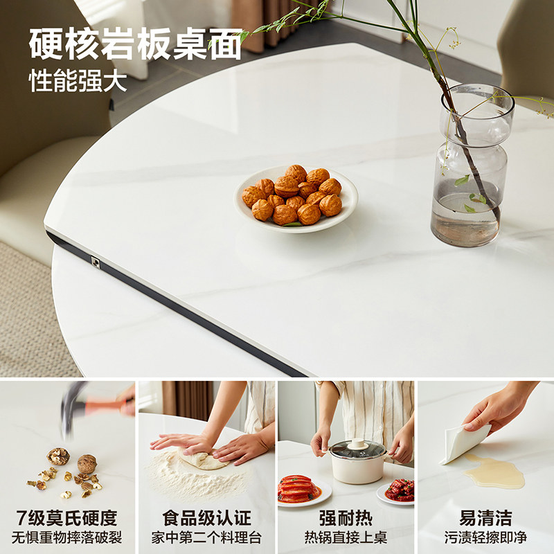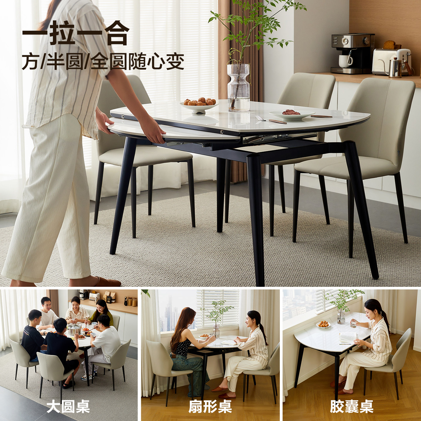 全友家居现代简约小户型客厅伸缩岩板餐桌可变圆桌家用多功能饭桌