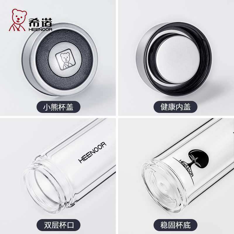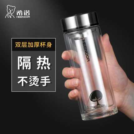 希诺双层玻璃杯带盖过滤办公室泡茶杯商务耐热670067016702耐高温