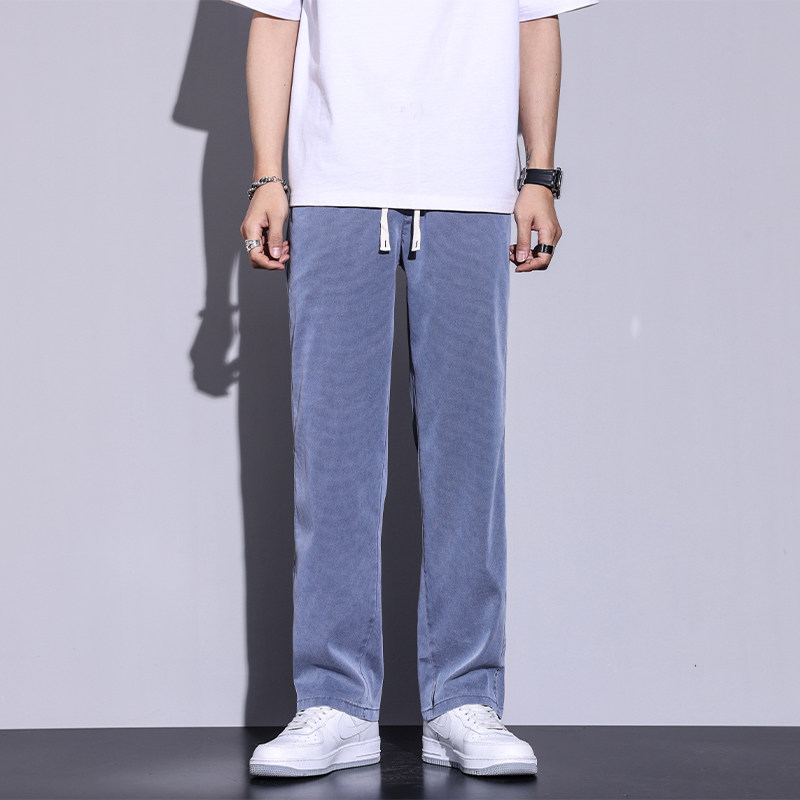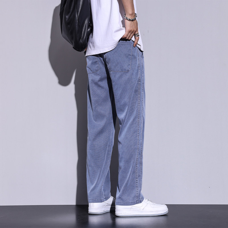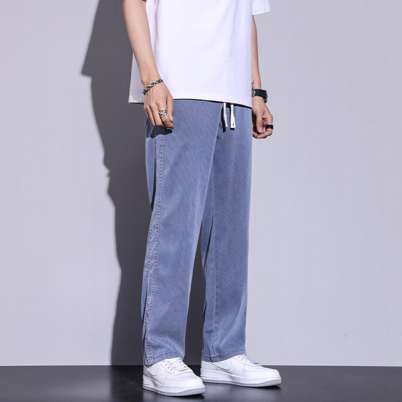 夏季薄款冰丝男士休闲阔腿长裤宽松直筒运动超薄潮牌天丝牛仔裤男