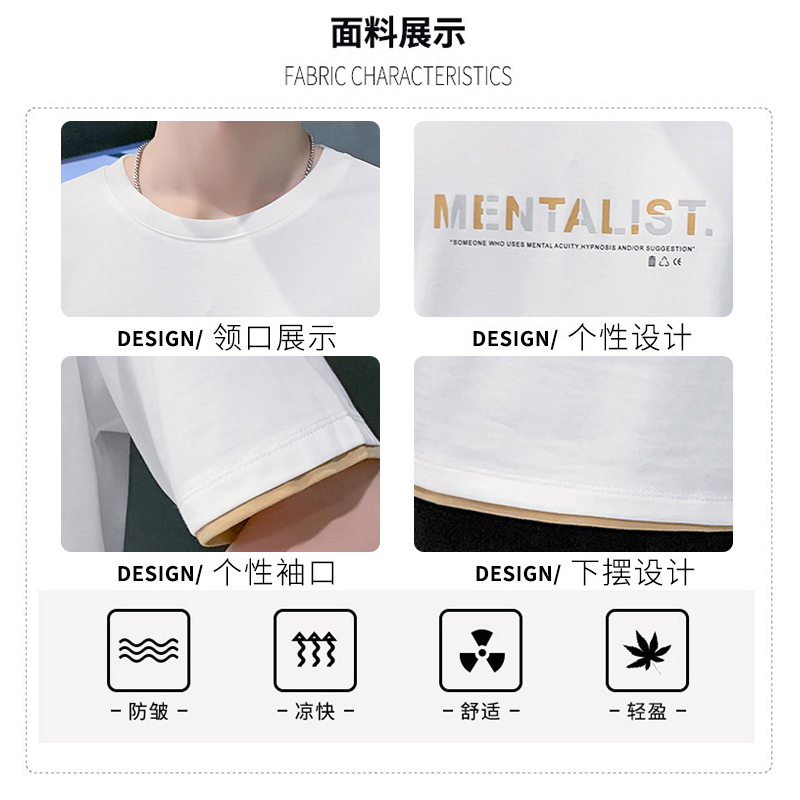 假两件冰丝短袖t恤男士夏季潮流潮牌红色半袖体恤个性凉感上衣服