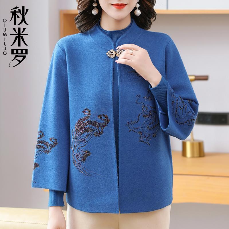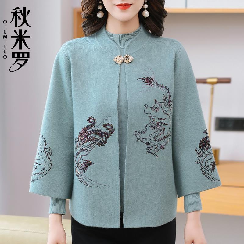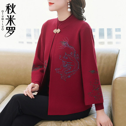 妈妈秋装针织开衫外套贵夫人打底衫毛衣中老年女装春秋季两件套装