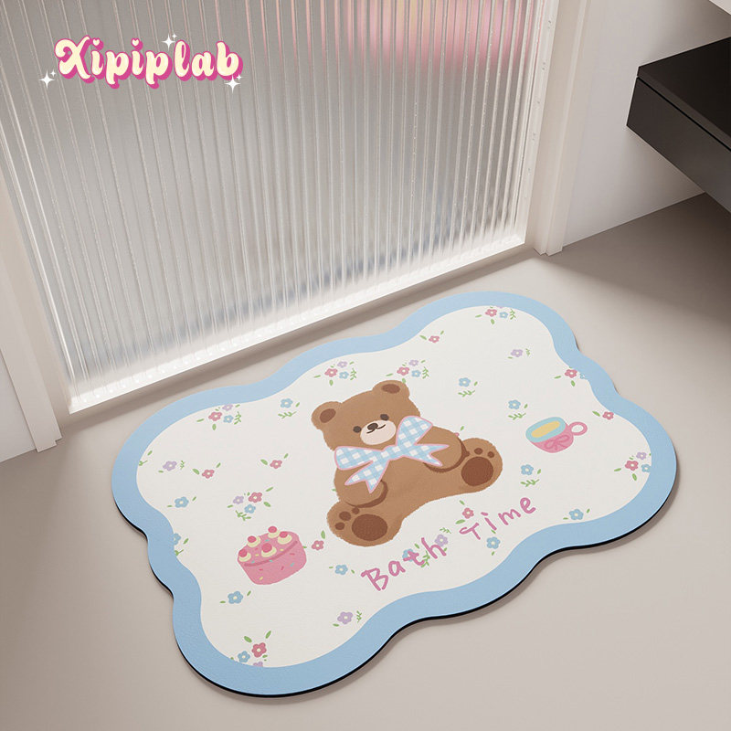 xipiplab韩系泰迪熊浴室地垫吸水防滑脚垫子卫生间厕所洗手间门垫