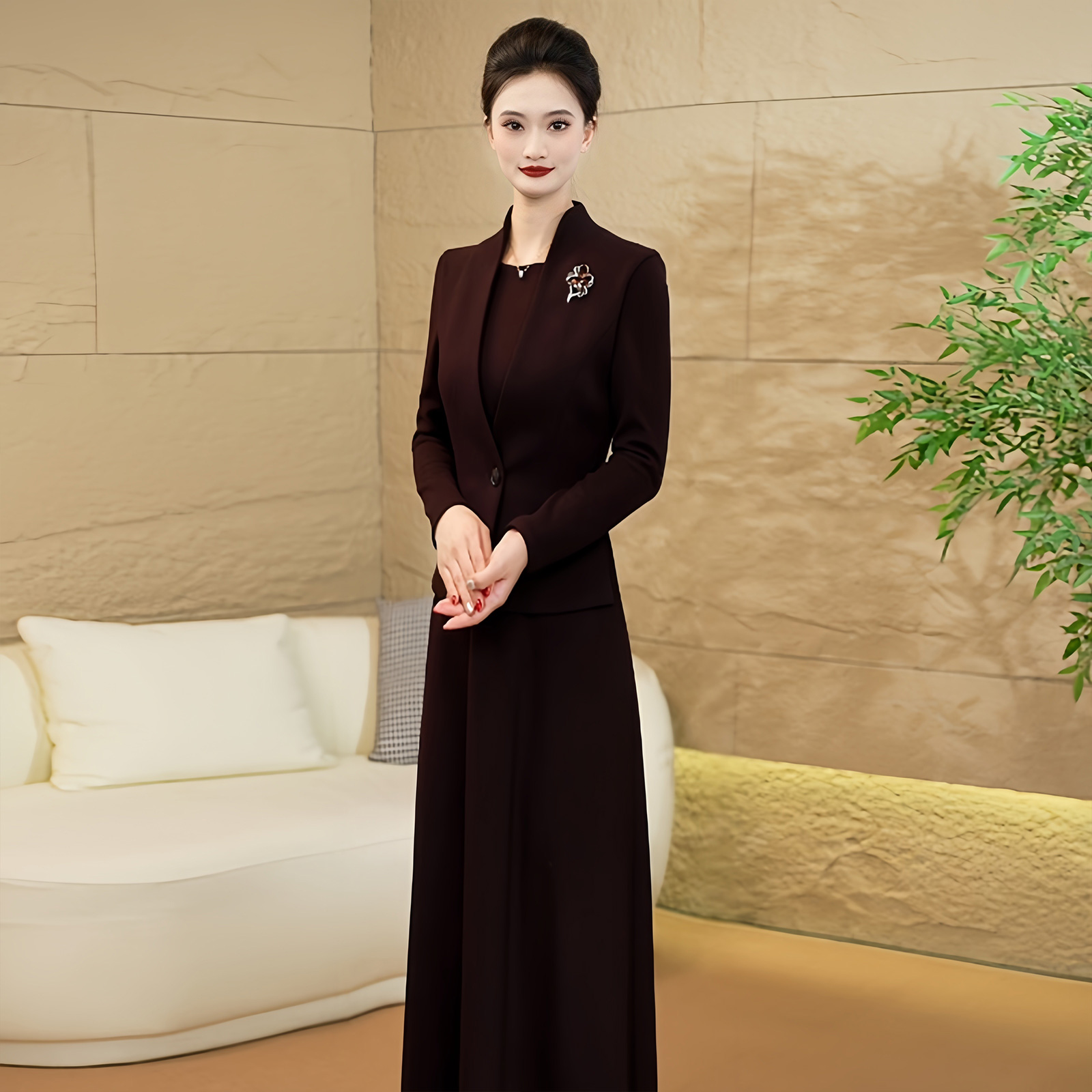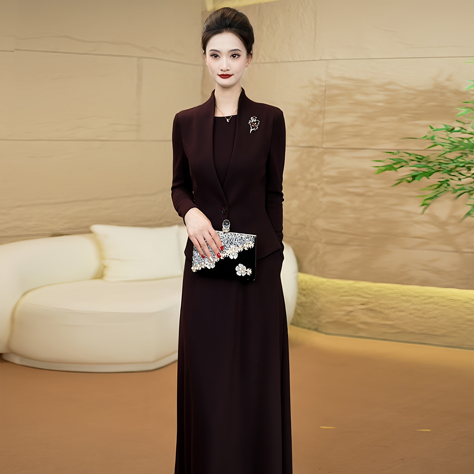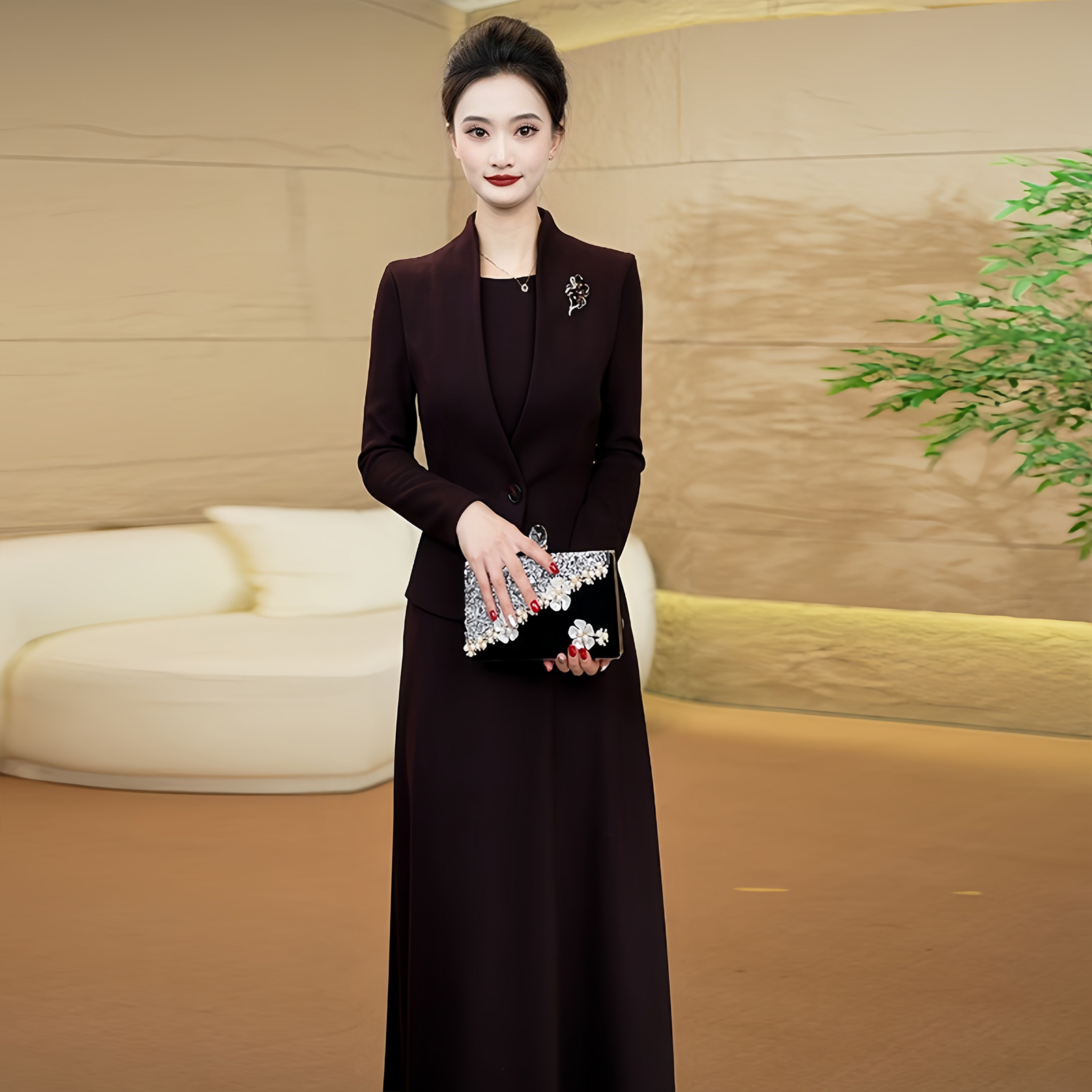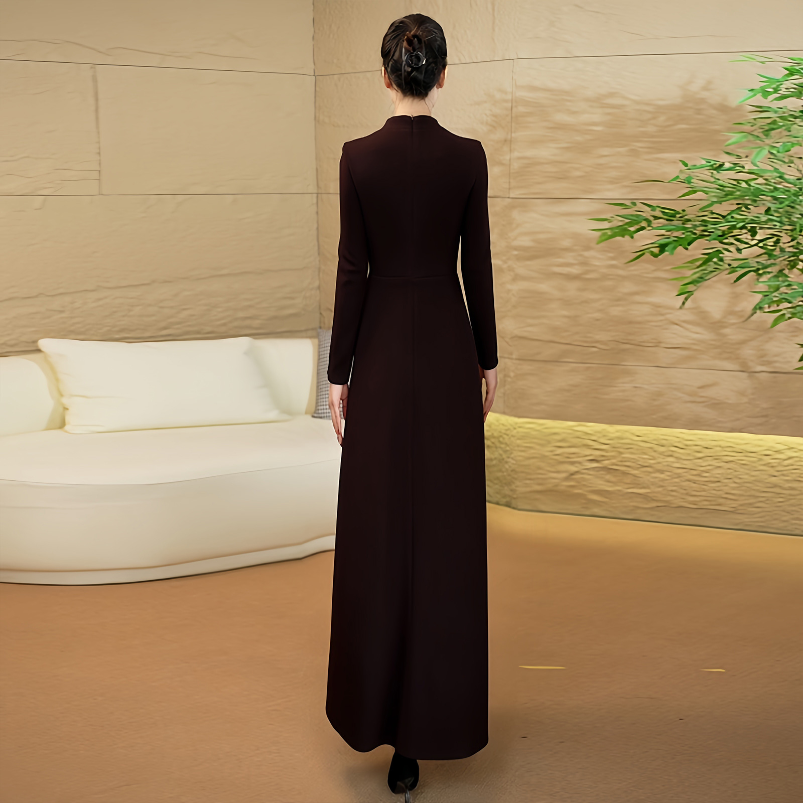 紫色秋冬连衣裙女新款气质显瘦长袖连身裙女假两件端庄气质长裙子