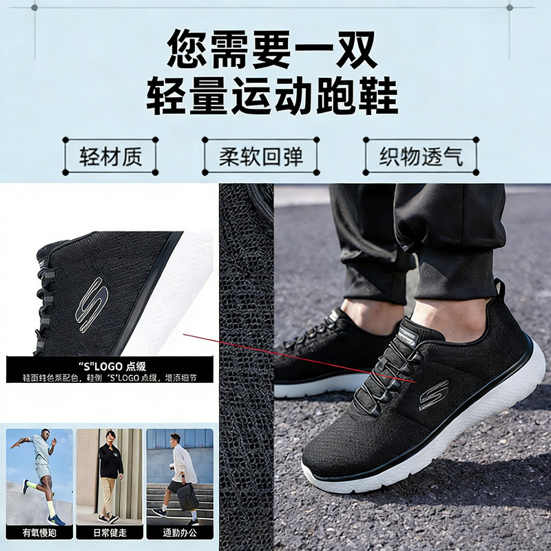 斯凯奇男鞋夏季新款一脚蹬穿脱网面爸爸休闲鞋子透气男士运动鞋