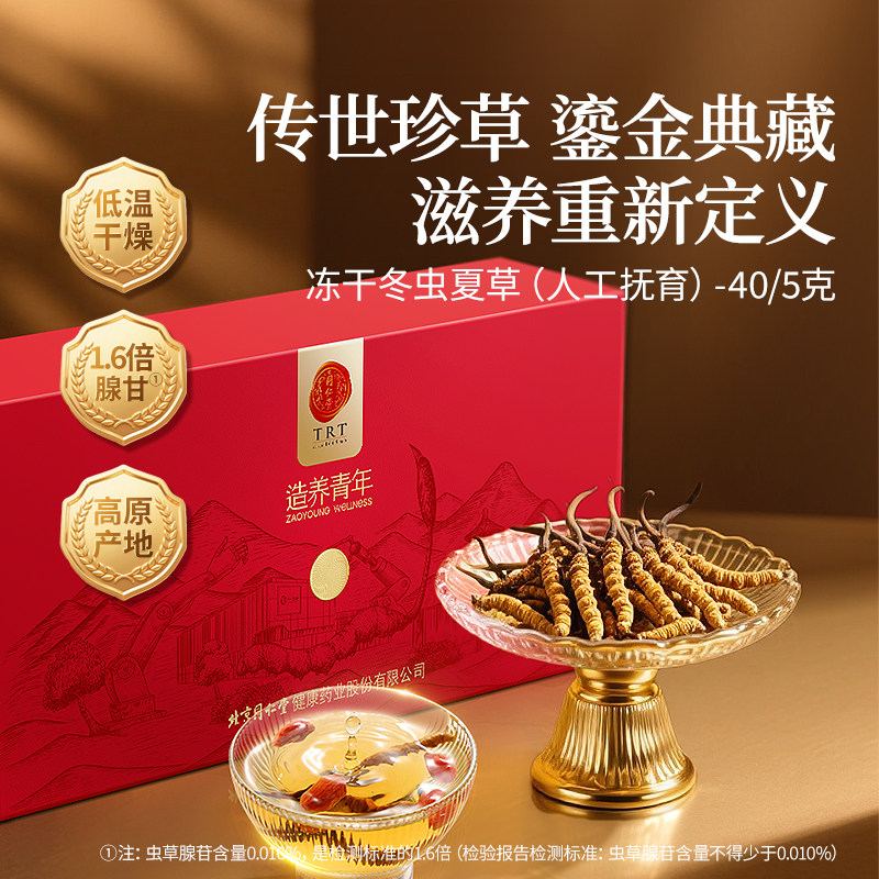 【正宗同仁堂品牌】北京同仁堂冬虫夏草40/5克虫草礼盒送父母滋补