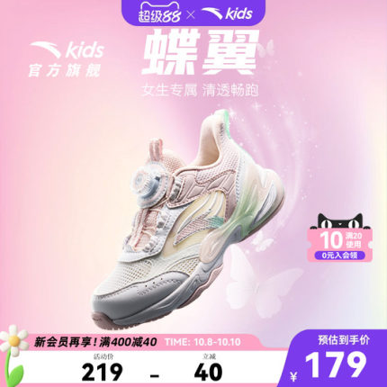 安踏童鞋女童运动鞋蝶翼跑鞋2025夏季新款小童跑步鞋透气鞋子网面