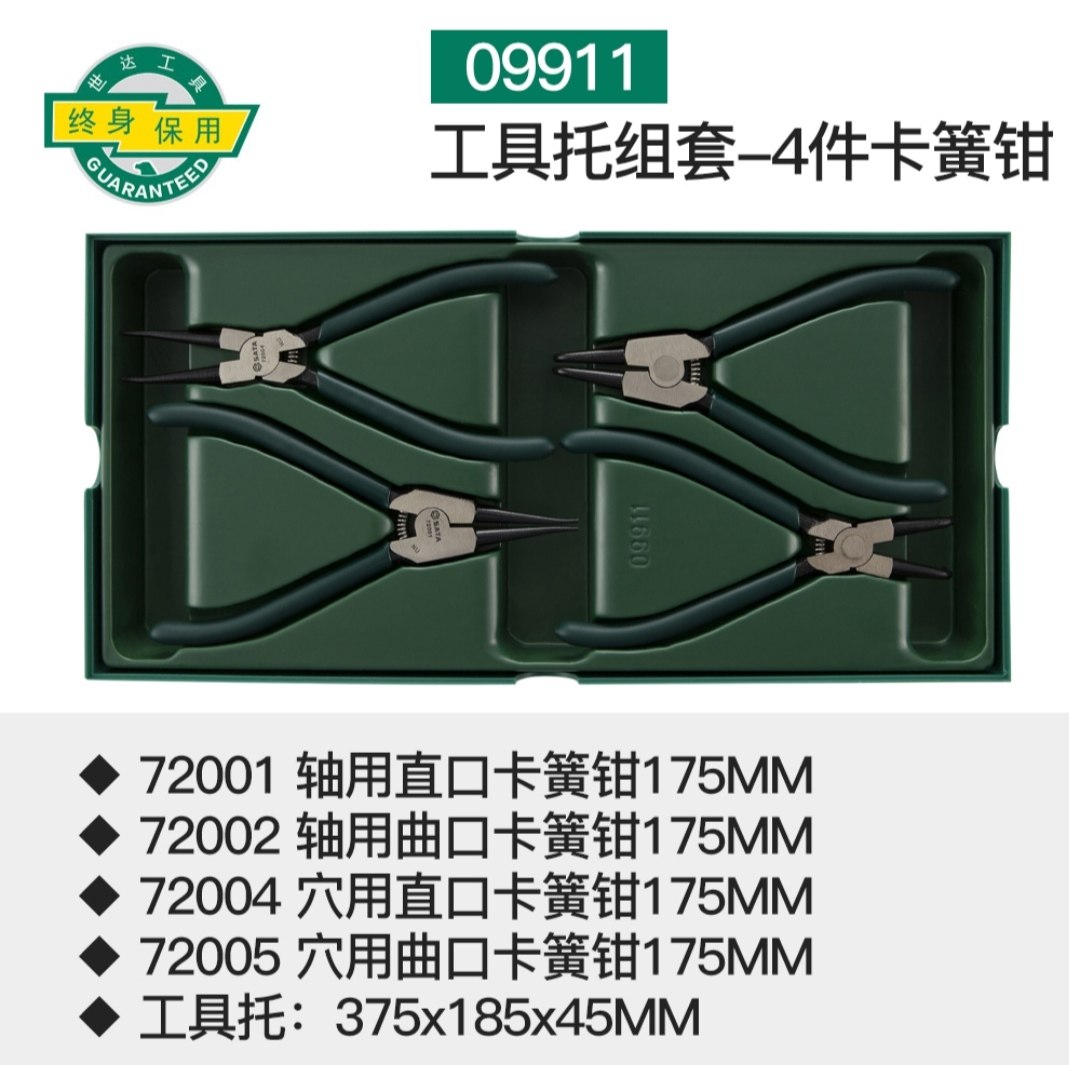 世达卡簧钳工具托套装4件7寸轴用直口穴用曲口内卡外卡钳子09911
