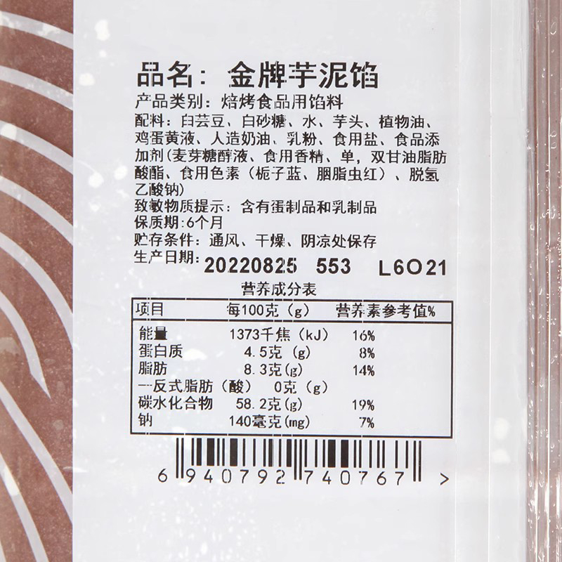苏旺金牌芋泥馅5kg香芋馅蛋糕麻薯面包蛋黄酥雪媚娘馅料5kg