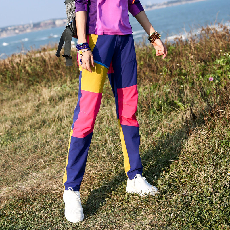 户外拼色速干裤女长裤弹力薄款修身显瘦吸汗透气运动登山徒步夏季