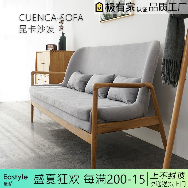 北欧现代简约单人布艺沙发日式风小户型客厅实木家具简易整装sofa