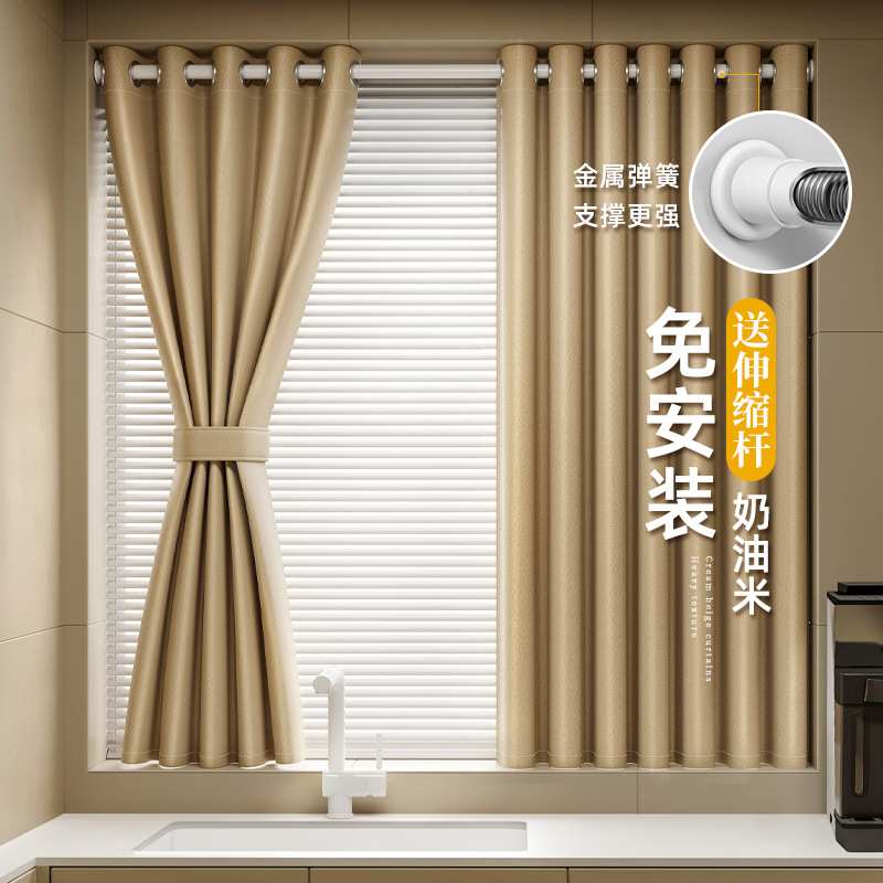 窗帘杆一整套免打孔安装卧室全遮光帘2025新款厨房小窗客厅秋冬