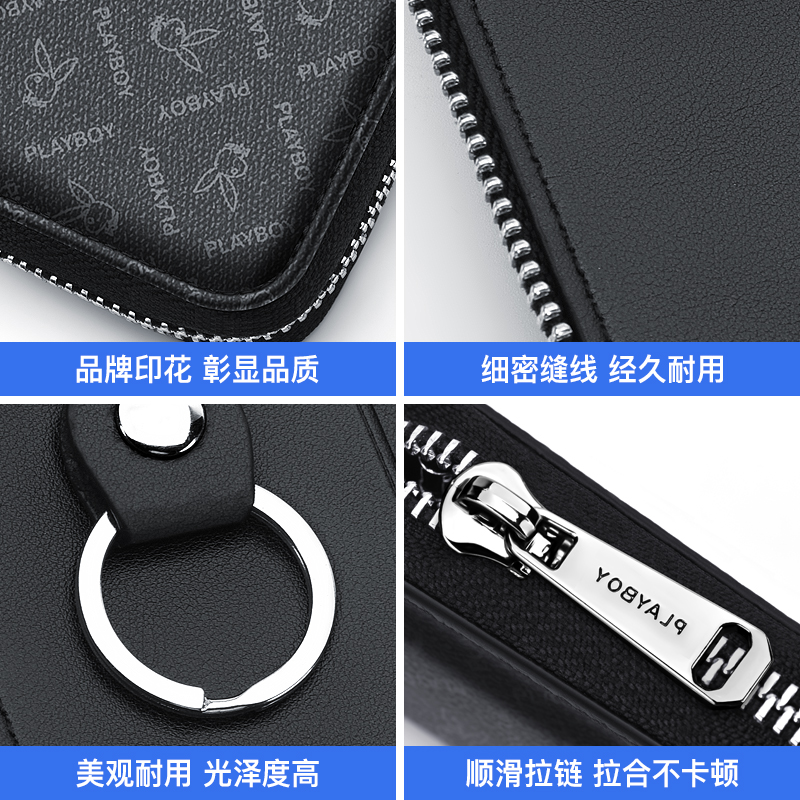 花花公子男士钥匙包新款多功能收纳卡包收纳保护套简约家用锁匙包