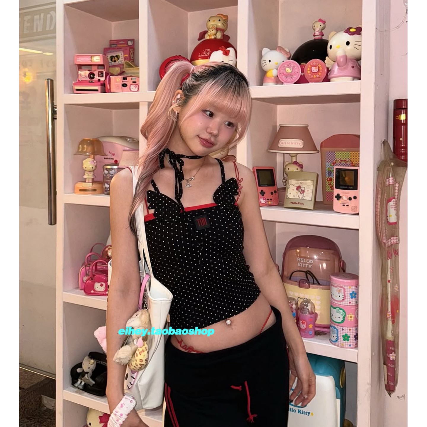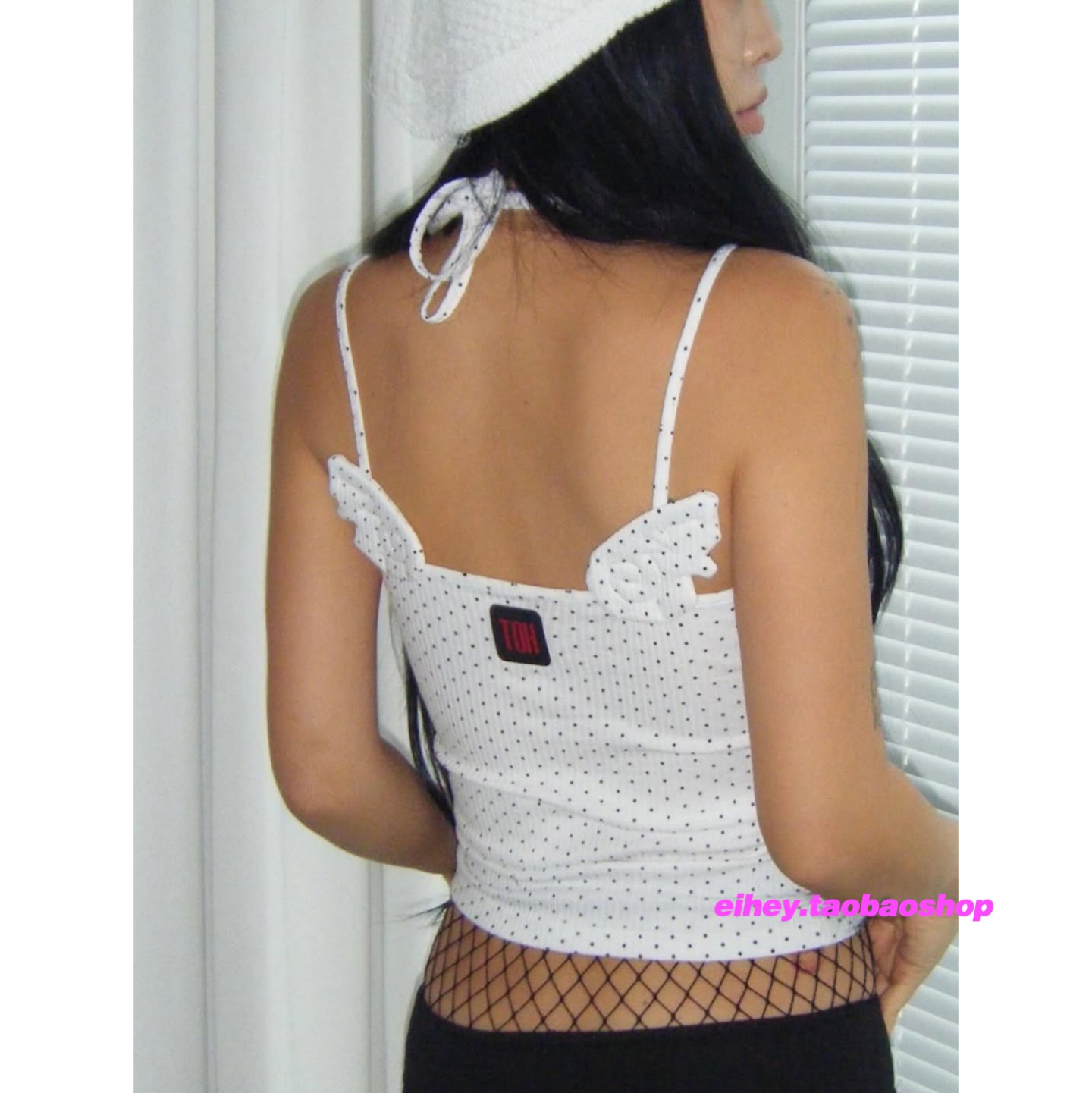 eihey诶嘿宋雨琦同款可爱性感波点立体天使翅膀刺绣背心吊带上衣