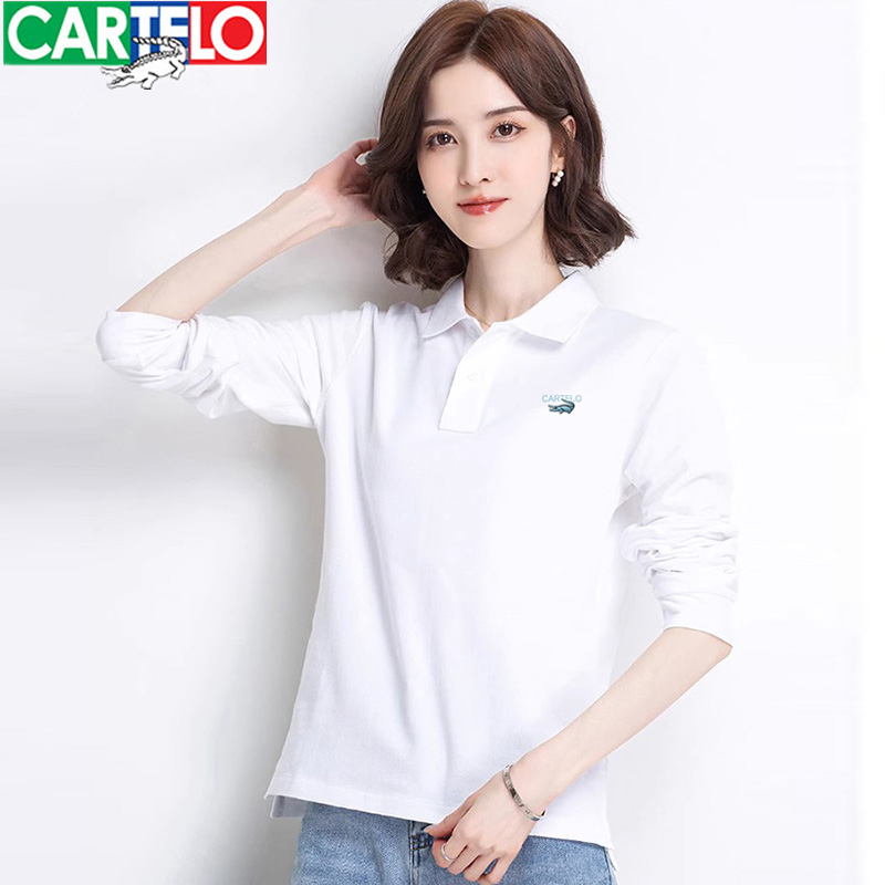 卡帝乐鳄鱼POLO衫女长袖t恤秋季纯棉宽松大码运动翻领休闲上衣潮