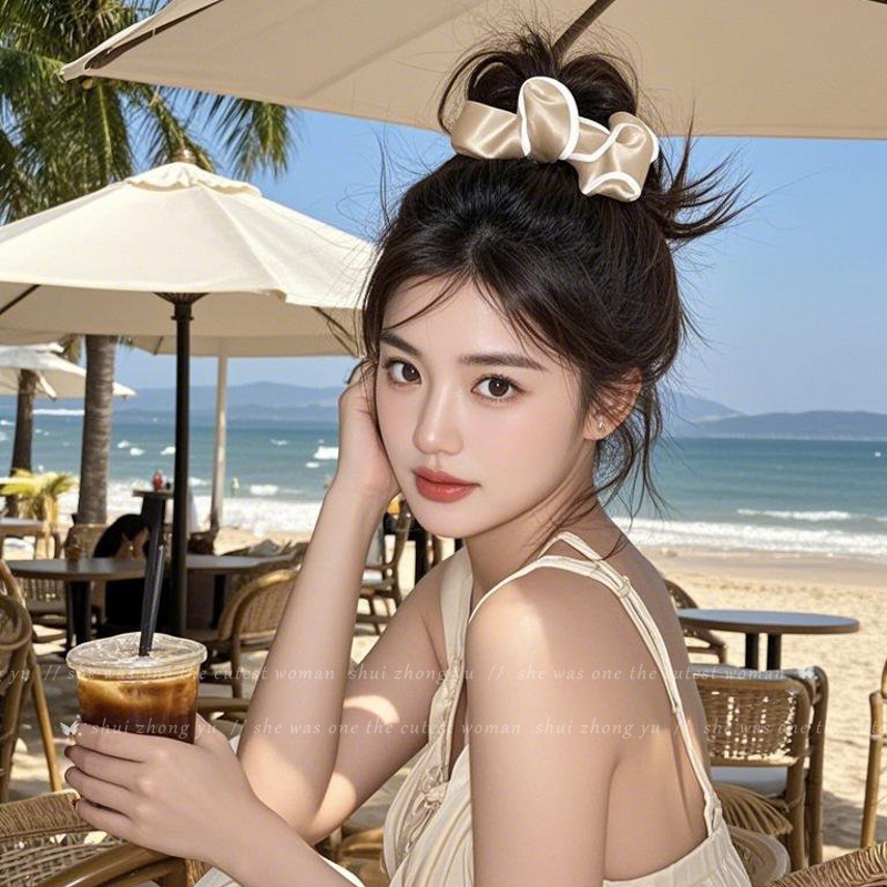 黑色缎面大肠发圈女2025新款扎头发高马尾皮筋发绳慵懒风头绳头饰