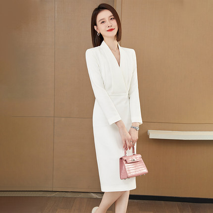 白色连衣裙正式场合主持人女通勤气质高端精致裙子订婚领证小礼服