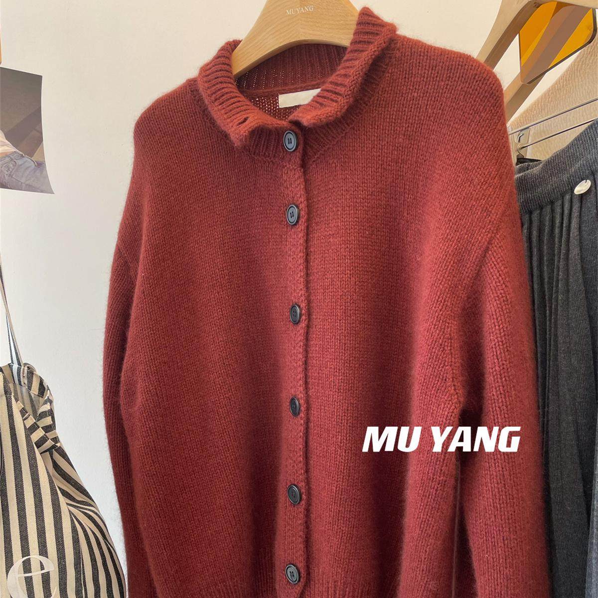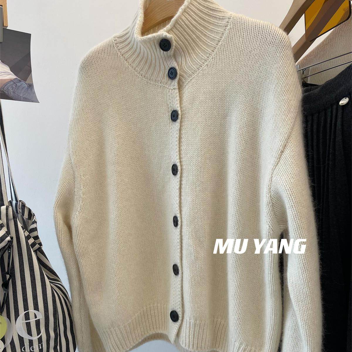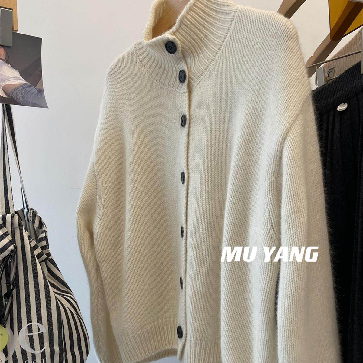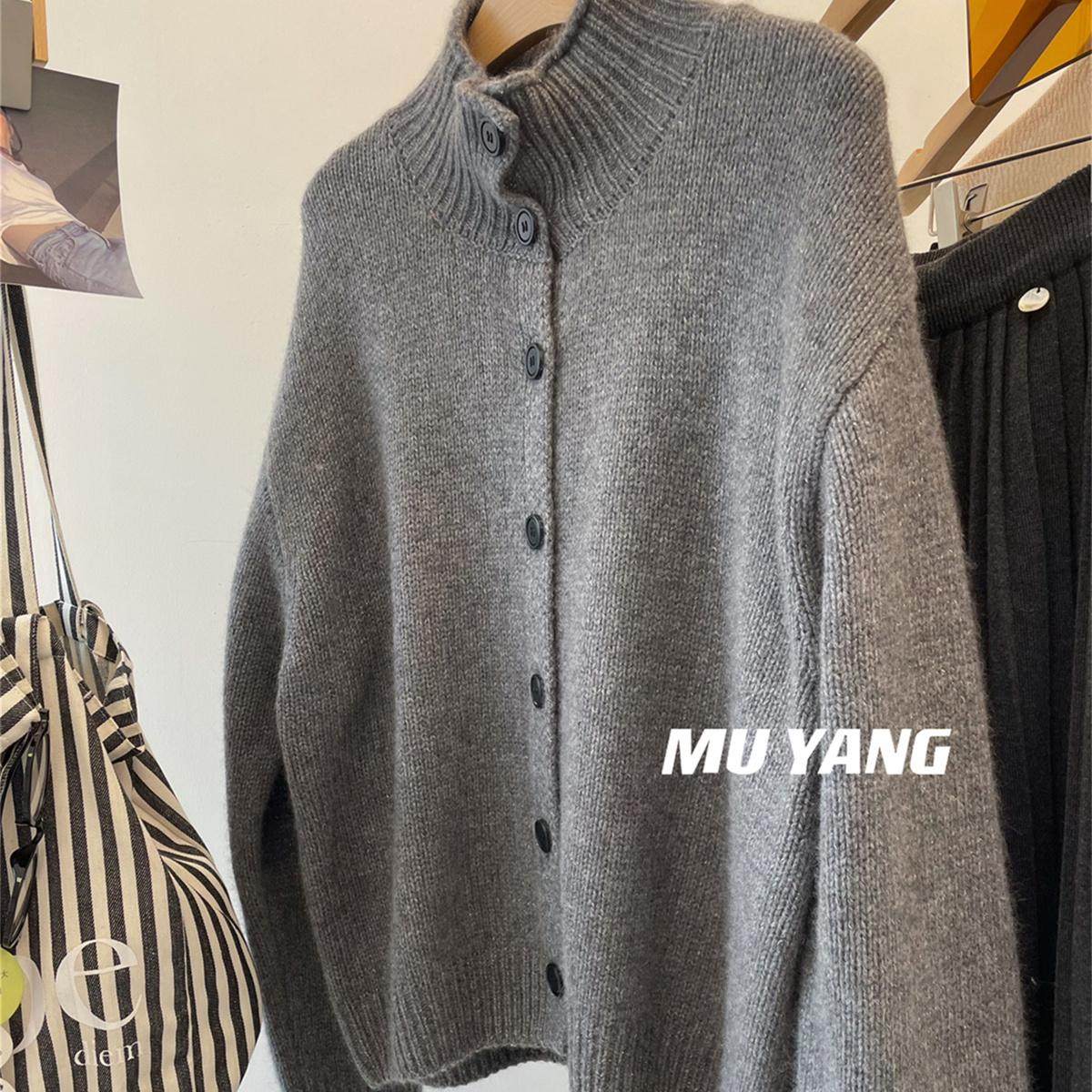 秋冬重磅时尚灰色半高领韩系休闲女宽松加厚慵懒风针织开衫毛衣