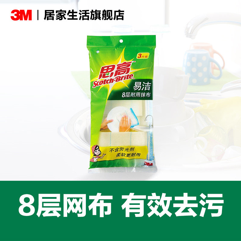 3M思高易洁8层耐用型抹布天然材质清洁布洗碗布不易沾油 3片装