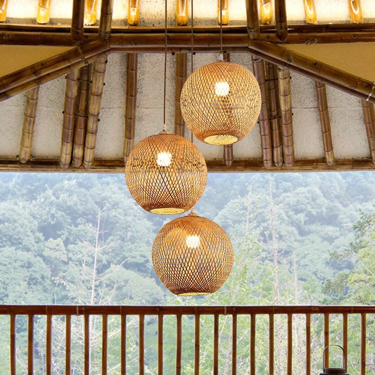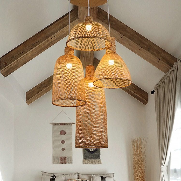 竹编组合吊灯创意个性中式装饰餐厅大厅茶室民宿复式楼梯三头灯具